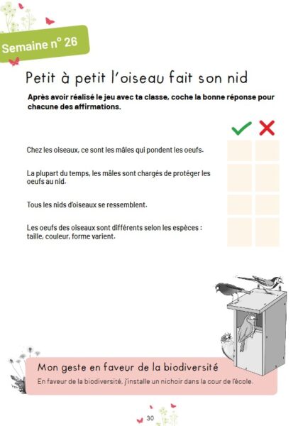 En fin de séance, un geste à faire en faveur de la biodiversité, à la portée de l’élève, est intégré. « Avec ces activités hebdomadaires, les enfants apprennent à connaître, sont plus sensibles à la nature de proximité et en parlent à leurs parents. Nous avons des témoignages d’enseignant.es qui expliquent qu’au fil des semaines, les enfants s’impliquent de plus en plus, grâce au maintien de la ritualisation des séances. Ces quinze minutes développent leur curiosité et leur font prendre conscience de toute la vie qu’il y a autour d’eux » développe Jihane Hafa.